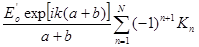 Здесь отброшена временная зависимость и учтено, что источник испускает сферическую волну, амплитуда которой