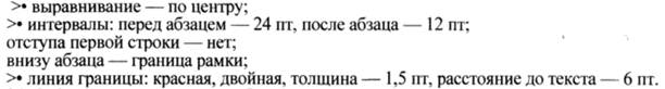 Маркированный список выполнить красным цветом, шрифт Courier New, размер – 12 пт.