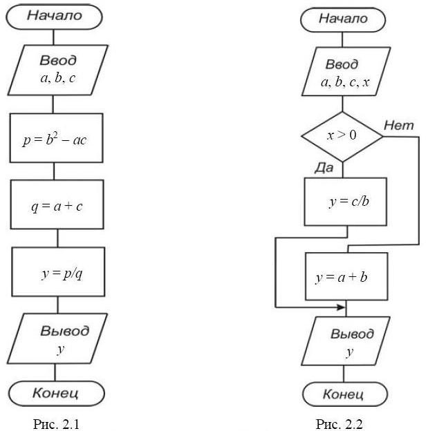 На рис. 2 показан пример алгоритма с разветвлением для вычисления следующего выражения: