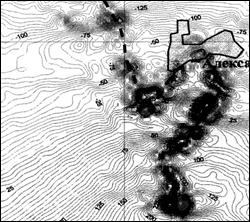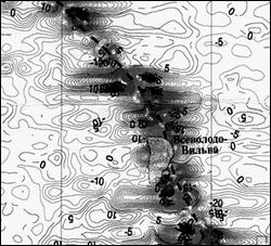Рис.12. 22. Магнитная карта над старой дорогой, покрытой