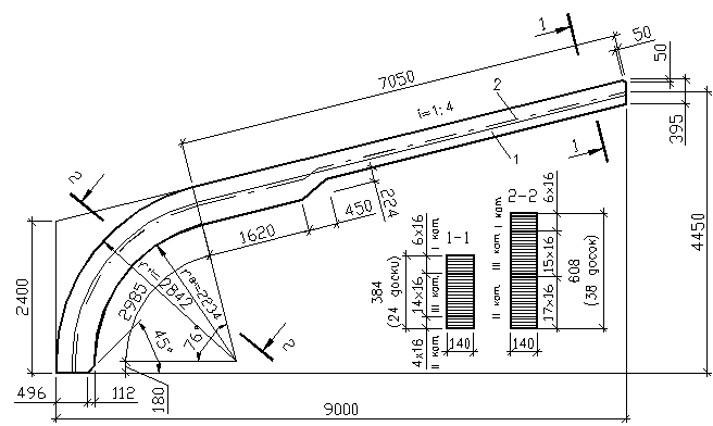 Угол наклона закругленной части полурамы