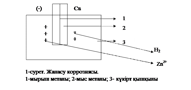 Демек, электрохимиялық коррозия кезінде қышқыл орта болса, активтілігі нашар металдың бетінде сутегі түзіледі.(31-сурет)