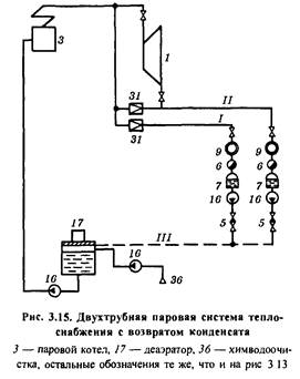 На рис. 3.15 показана двухтрубная паровая система с возвратом конденсата.