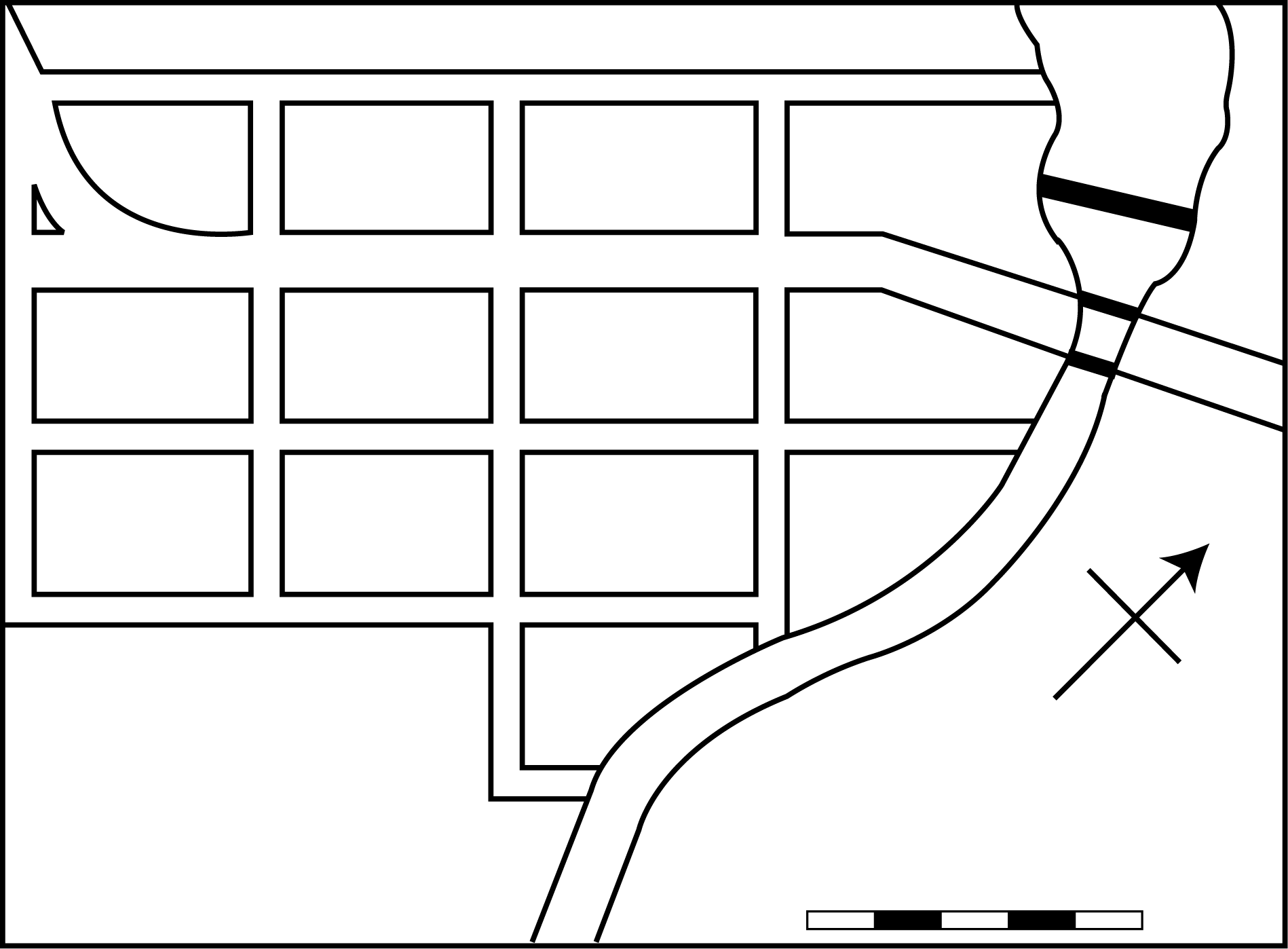Ниже находится план части предполагаемого города. Город разделен на маленькие блоки. Как показано, каждому блоку присвоен четырехзначный номер.