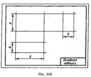 Выбранное удачное расположение фиксируется тонкими линиями, как показано на рис. 318. В их пределах строят изображения.