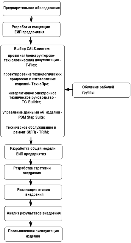 · предварительное обследование объекта автоматизации и разработка архитектуры ИМИ и стратегии внедрения CALS-технологий;