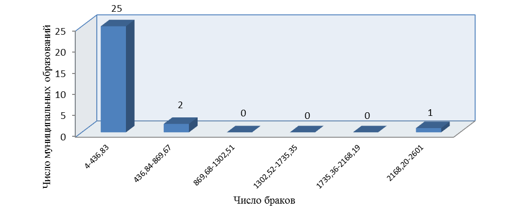 Рисунок 3 -Группировка муниципальных образований по общей численности браков