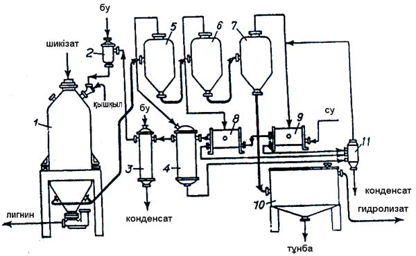 13 сурет - Өсімдік шикізатының гидролизатын алудың технологиялық сызба нұсқасы
