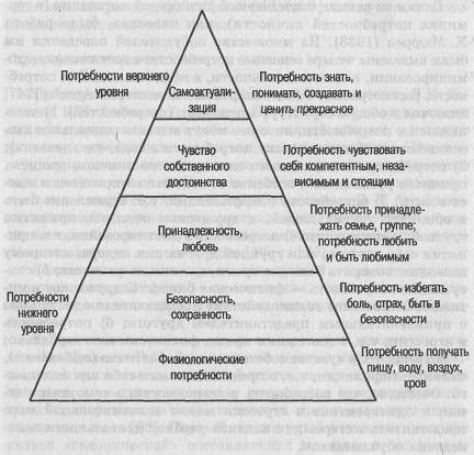В плане рассмотрения структуры потребностной сферы человека большой интерес представляет «потребностный треугольник» А. Маслоу [251], в котором, с одной стороны, очевиднее высвечивается социальная, интерактивная зависимость человека, а с другой — его познавательная, когнитивная природа, связанная с самоактуализацией. Ниже приведен треугольник потребностей А. Маслоу. При его рассмотрении обращает на себя внимание, во-первых, место и значение, которое отводится собственно когнитивным (познавательным) и коммуникативным потребностям человека, и, во-вторых, то, что потребностная сфера человека рассматривается вне структуры его деятельности — только применительно к его личности, ее самоактуализации, развитию, комфортному существованию (в понимании Дж. Брунера).