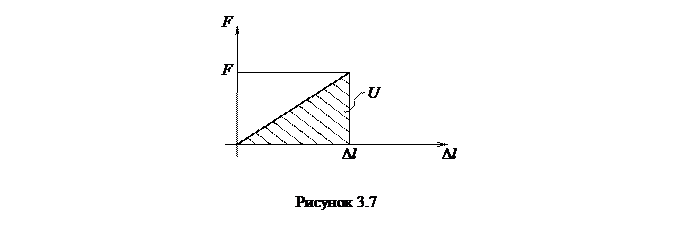 Довольно часто приходится оценивать напряженно-деформированное состояние с позиции работы или энергии, затраченной на деформирование. В случае растяжения или сжатия работа деформирования, переходящая в потенциальную энергию упругой деформации, найдется как произведение средней нагрузки на создаваемую деформацию стержня, то есть равна площади диаграммы нагружения (рисунок 3.6).