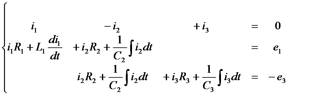 По первому закону Кирхгофа нужно составить уравнения, равное числу узлов без единицы, то есть в данном случае одно уравнение. Число уравнений по второму закону Кирхгофа равно числу независимых контуров. Запишем сначала эти уравнения для мгновенных значений, то есть в дифференциальной форме.