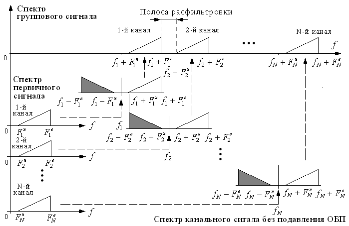 , состоящий из суммы канальных сигналов. В Лекции без подавления ОБП (КПФ нет)
