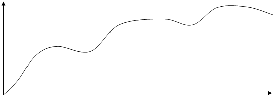 На представленных графиках изображены сглаженные кривые, типичные для различных ситуаций. Однако реальные кривые, отражающие развитие спроса, отличаются от идеальных сглаженных кривых, так как содержат флуктуации (колебания) спроса, зависящие от сезонности, маркетинговой активности операторов рынка, временных изменений предпочтений потребителей и т.д. Реальная кривая жизненного цикла условного товара может выглядеть, например, следующим образом.