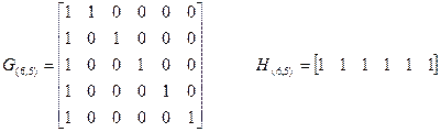 Этот код является групповым (6, 5) – кодом. Порождающая матрица и матрица проверок этого кода имеют вид: