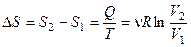 Приведём формулы для подсчёта изменения энтропии в случае изопроцессов для идеального газа: