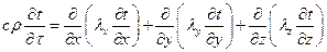 Вывод уравнения основывается на законе сохранения энергии или I-м законе термодинамики, записанного для dV и dt. Получим уравнение в декартовой системе координат, тогда