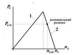 Регулирование частоты вращения и мощности турбин осуществляется изменение количества и качества подаваемого пара. Турбины допускают длительную перегрузку до 25%, т.к. в нормальных условиях работают без предельной подачи пара. Внешняя и регулятивная характеристики турбины имеют вид, показанный на рисунке 4.3.