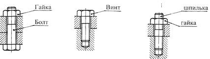 Для соединения деталей применяют болты с гайками, винты, шпильки с гайками.