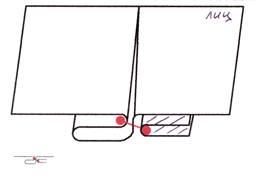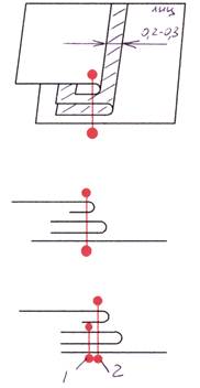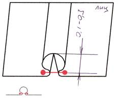Обработка канта (длинна, ширина 3-4 см, Н.О., заутюжена изнаночной стороной внутрь)