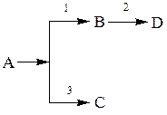 Реакции 1 и 2 называют последовательными, а 1 и 3 – параллельными. А – исходное вещество (реагент), В, С и D – продукты (макропродукты), В – промежуточный продукт, С и D – конечные продукты (при условии, что они не переходят в другие продукты).