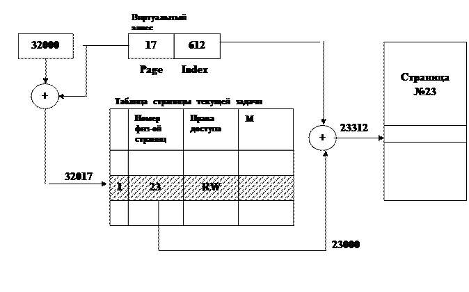 Защита страничной памяти основана на контроле уровня доступа каждой страницы. Существующие уровни доступа: только чтения, чтение и запись, только выполнение. Каждая страница снабжается соответствующим кодом. При обращении к виртуальной странице отсутствующей в физической памяти возникает прерывание и управление передается диспетчеру памяти, который должен найти свободное место. Если свободной страницы нет, то диспетчер памяти, по одной из дисциплин замещения определит страницу подлежащую расформированию или сохранению во внешней памяти. На её место он разместит виртуальную страницу к которой было обращение из задачи. Диспетчер памяти выбирает для замещения ту страницу, на которую не было ссылки на протяжении наиболее длительного периода времени.