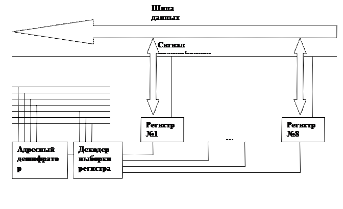По отношению центрального процессора к выполняющейся на нем программе внешние устройства представляют собой набор специализированных ячеек памяти или регистров. Регистры устройств подключаются к шинам адреса и данных вычислительной системы. Внешнее устройство имеет адресный дешифратор. Если выставленный по шине адрес соответствует адресу одного из регистров устройства дешифратор подключает соответствующий регистр к шине данных. Таким образом регистры устройства получают адреса в физическом адресном пространстве микропроцессора