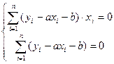 Таким образом, получается система линейных уравнений с неизвестными: a и b: