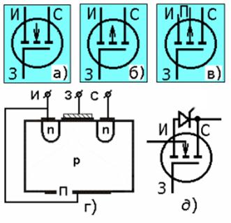 г) структурная схема МОП - транзистора;