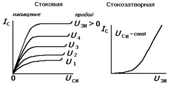Стоковые (выходные) характеристики полевого транзистора с индуцированным каналом n-типа близки по виду аналогичным характеристикам транзистора со встроенным каналом и имеют тот же характер зависимости Ic = F(Ucи) . Отличие в том, что управление током транзистора осуществляется напряжением одной полярности, совпадающей с полярностью напряжения Ucи .