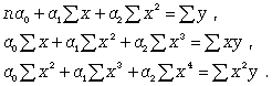 ), то систему нормальных уравнений для отыскания параметров a0 , a1 , a2 (такую связь называют множественной, поскольку она предполагает зависимость более чем двух факторов) можно представть в виде