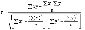 Для определения степени тесноты парной линейной зависимости служит линейный коэффициент корреляции r, для расчета которого можно использовать, например, две следующие формулы:
