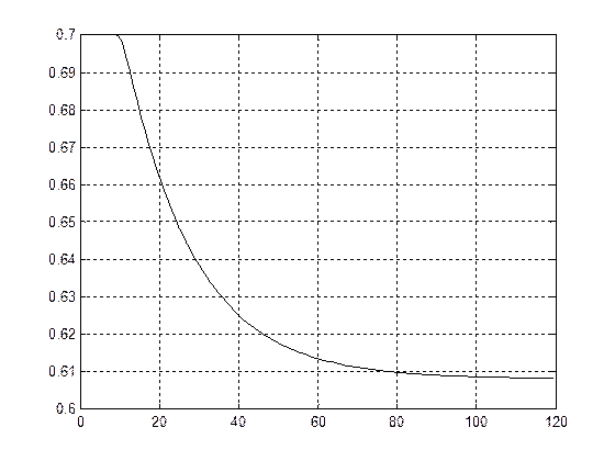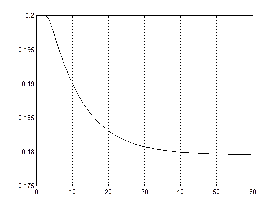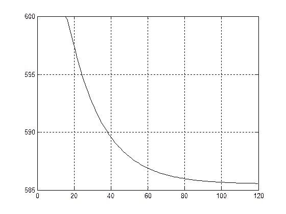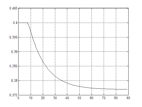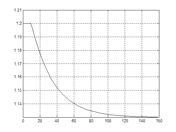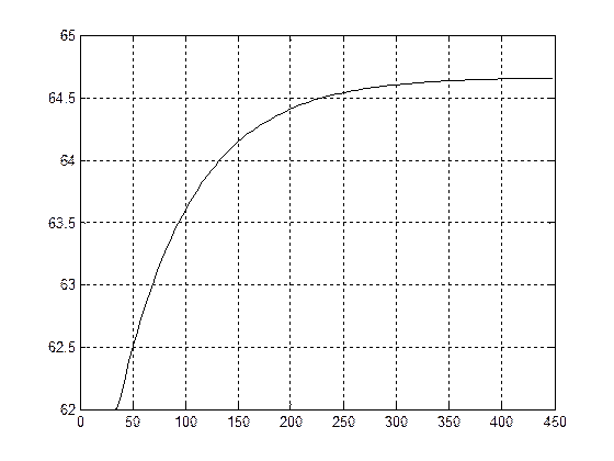 Объект регулирования аппроксимируется апериодическим звеном первого порядка с запаздыванием. Как было сказано выше, величина относительного изменения входного параметра µ задается в процентах изменения степени открытия клапана. Это позволяет при использовании метода касательной определять коэффициент передачи объекта, как: