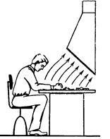 Если помещение очень велико, а число людей, находящихся в нем, мало, причем место нахождения их фиксировано, не имеет смысла оздоровлять все помещение полностью, можно ограничиться оздоровление воздушной среды только в местах нахождения людей. С этой целью применяется местная вытяжная и приточная вентиляция.