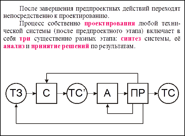 Исследование различных описаний процессов решения технических задач позволяет говорить о присущих им определенных общих чертах. Общее в процессах проектирования любого объекта состоит в неоднократно возникающих действиях синтеза, анализа и принятия решения.