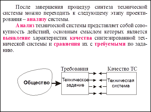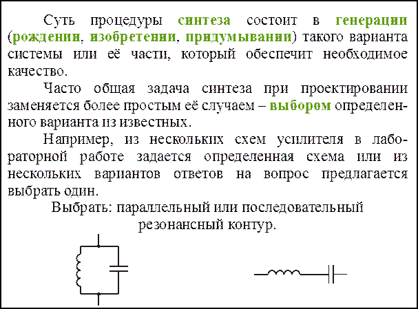 Приведенное представление о процессе проектирования позволяет сделать вывод о чрезвычайной важности качества решения задачи синтеза. Ошибки, заложенные на этапе синтеза, невозможно полностью исправить на последующих этапах без повторного синтеза и они неизбежно будут присутствовать в окончательном решении. Следовательно, качество проектирования во многом определяется качеством синтеза вариантов.