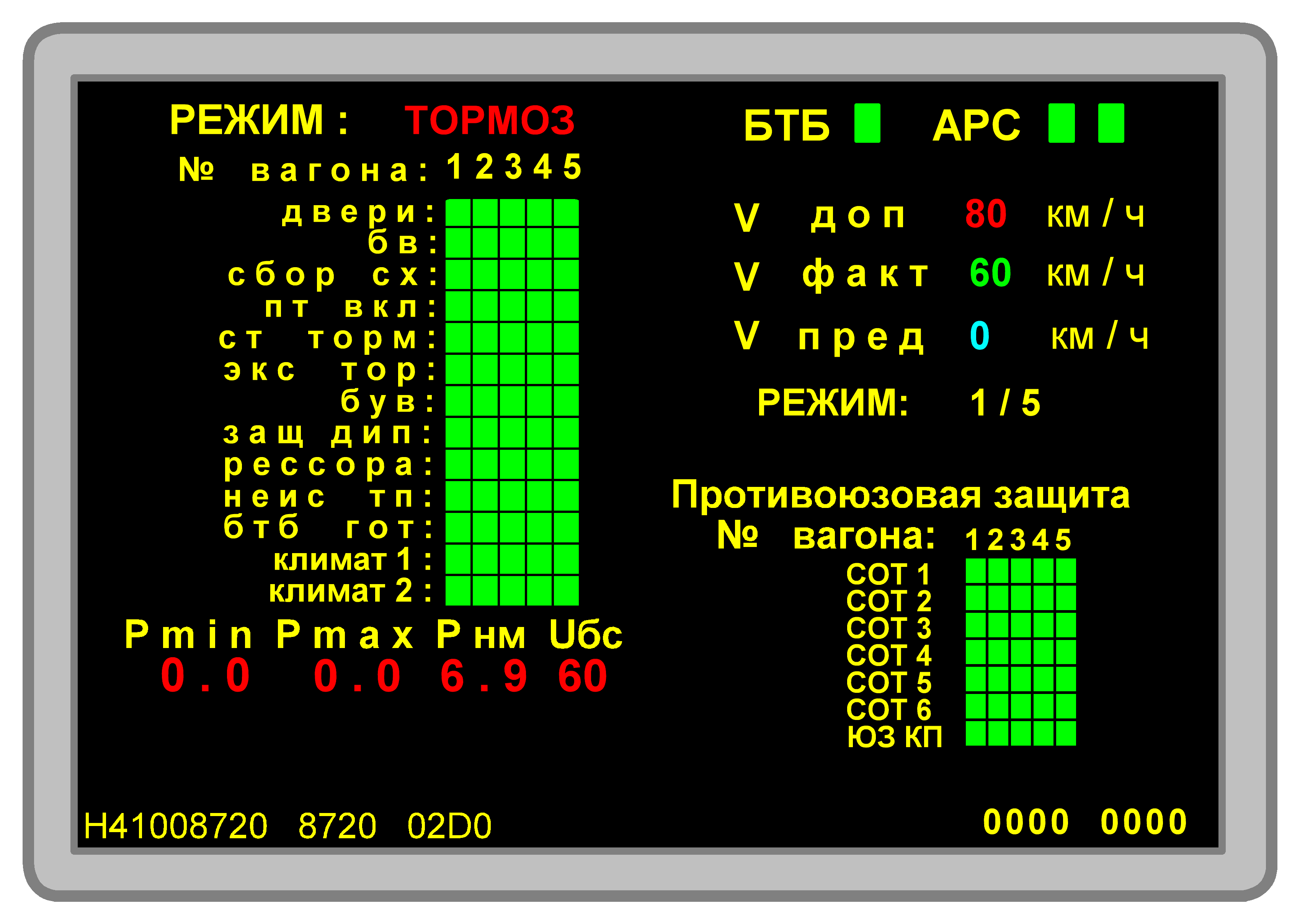 > ,,ВЫБЕГ’’ в положение ,,ТОРМОЗ’’ контролируя сбор схемы по сигнализации в строке штатного режиме ,,СБОР СХ’’ экрана ММ.