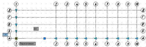 Послідовність установки відстаней між осями сітки