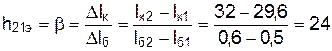 Коэффициент усиления по току определяется при коротком замыкании на выходе по приращениям тока коллектора и базы (