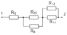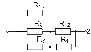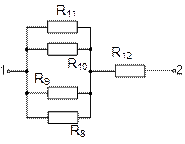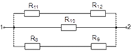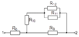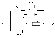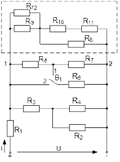 электрической цепи постоянного тока (рис. 1, а) и распределение токов по ветвям. Вариант электрической цепи (включая ее участок 1 – 2, рис. 1, б – з, ограниченный на схеме рис. 1, а пунктиром), положение выключателей В1 и В2 в схемах, величины сопротивлений резисторов