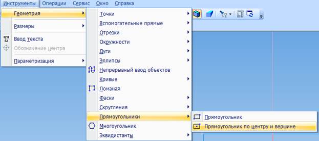 Нажал кнопку Инструменты => Геометрия => Прямоугольник => Прямоугольник по центру и вершине.