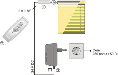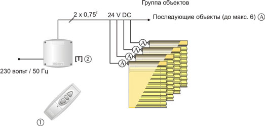 Схема индивидуального подключения для горизонтальных, рулонных жалюзи и плиссе.