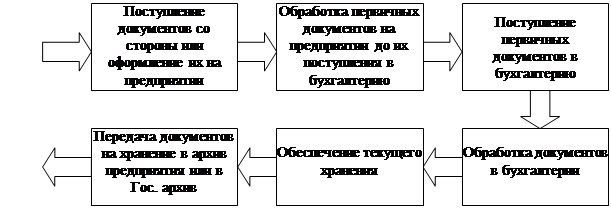 Документооборотом называется движение документов в процессе их оперативного использования и бухгалтерской обработки с момента составления или поступления от других предприятий и организаций до передачи на хранение в архив после записей в учетные регистры.