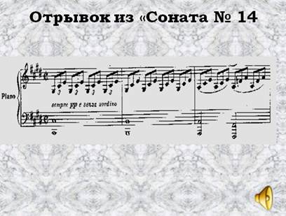 1. Создать третий слайд с макетом Заголовок и объект. В заголовок ввести Отрывок из «Соната № 14 (гарнитура шрифта Bookman Old Style, 44, полужирный, по центру.)