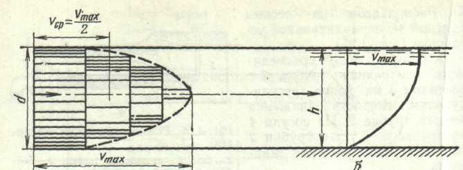 Для открытых потоков график распределения скоростей при ламинарном режиме показан на рисунке 2, б.