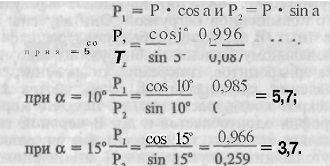 Как следует из схемы, направление силы Р в этом случае составляет угол а с осью зуба (N—N) , что соответствует направлению силы, падающей на зуб во время жевания. При отсутствии рядом стоящего зуба (контактного пункта), когда действующая сила Р разлагается на составляющую ее силу Р,, действующую по оси N —N, и силу Р2, действующую по направлению, перпендикулярному N —N, именно стенки альвеолярного отростка со стороны отсутствующего зуба оказываются резко перегруженными: при этом чем больше угол а, тем больше перегрузка. Это объясняется тем, что при увеличении угла а соотношения между Р, и Р2 резко меняются в сторону увеличения Р2, исходя из того, что: