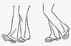 Шаг «восьмеркой»: пятки рядом, носки врозь.