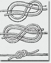 Это один из древнейших морских узлов, который применяли на кораблях для соединения двух тросов, как тонких, так и толстых. Фактически это та же восьмерка, завязанная двумя концами. существует два способа вязки этого узла. Сначала на конце одного из связываемых вместе тросов сделайте восьмерку. Навстречу выходу из нее ходового конца введите ходовой конец второго троса и повторите фигуру 8, завязанную на первом тросе. После этого, ухватившись за каждые два конца, слева и справа, равномерно начинайте затягивать узел, стараясь сохранить его форму. Для окончательной затяжки узла тяните за коренные концы тросов (см.рис.). Чтобы соединить два троса фламандским узлом вторым способом, ходовые концы связываемых тросов положите параллельно навстречу один другому так, чтобы они примерно по длине одного метра касались друг друга. На этом месте двумя сложенными вместе тросами завяжите восьмерку. При этом вам придется обносить вокруг и продевать в петлю вместе с коротким ходовым концом одного из тросов и длинный коренной. Именно в этом и состоит неудобство второго способа вязки фламандского узла. Соединение двух тросов фламандским узлом считается очень прочным. Этот узел, даже будучи сильно затянут, не портит трос, и его сравнительно легко развязать. Кроме того, он обладает превосходным качеством - не скользит в надежно держит на синтетической рыболовной леске.