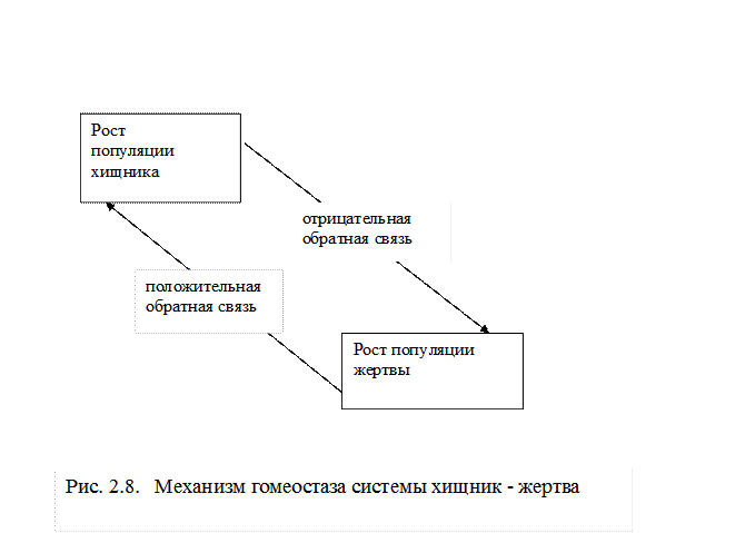последних (управляемый компонент), напротив, - снижению численности жертв. В первом случае это будет положительная обратная связь, во втором – отрицательная обратная связь (рис. 2.8.).