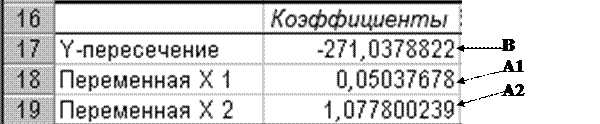 4. Скопировать полученные коэффициенты на лист с данными (лист 4) и записать полученное уравнение:
