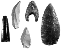 Переходным периодом от палеолита к неолиту считается мезолит — среднекаменный век. В жизни человеческого общества произошли перемены. Люди начали группироваться в небольшие коллективы, обладавшие подвижностью и способные осваивать значительную территорию. Иными, более эффективными становились орудия (с использованием кремневых вкладышей — микролитов). Были изобретены лук и стрелы, что чрезвычайно облегчило охоту. В распоряжении людей уже были деревянная утварь, плетенные из лыка или камыша корзины и сумки. Человек, видимо, научился вязать или плести ткани и рыболовные сети. Он придумал лодку — первое средство передвижения.